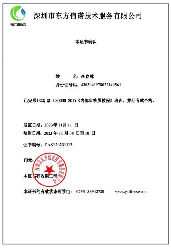 售后服務(wù)師證書-李春林
